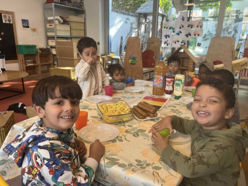 We hebben ons thema afgesloten met een wereldfeest, waar alle ouders uitgenodigd waren. Het was een gezellige dag vol muziek, dans en lekkernijen uit verschillende landen. Een feestelijke afsluiting van een superleuk thema! 🎉