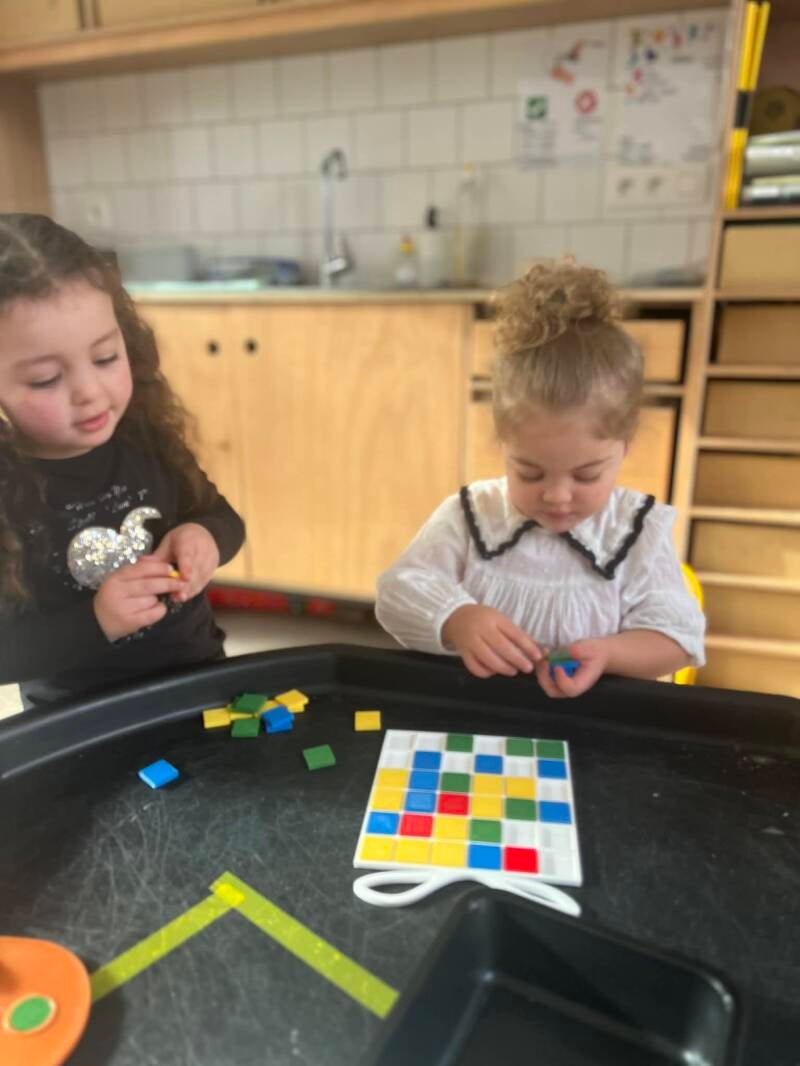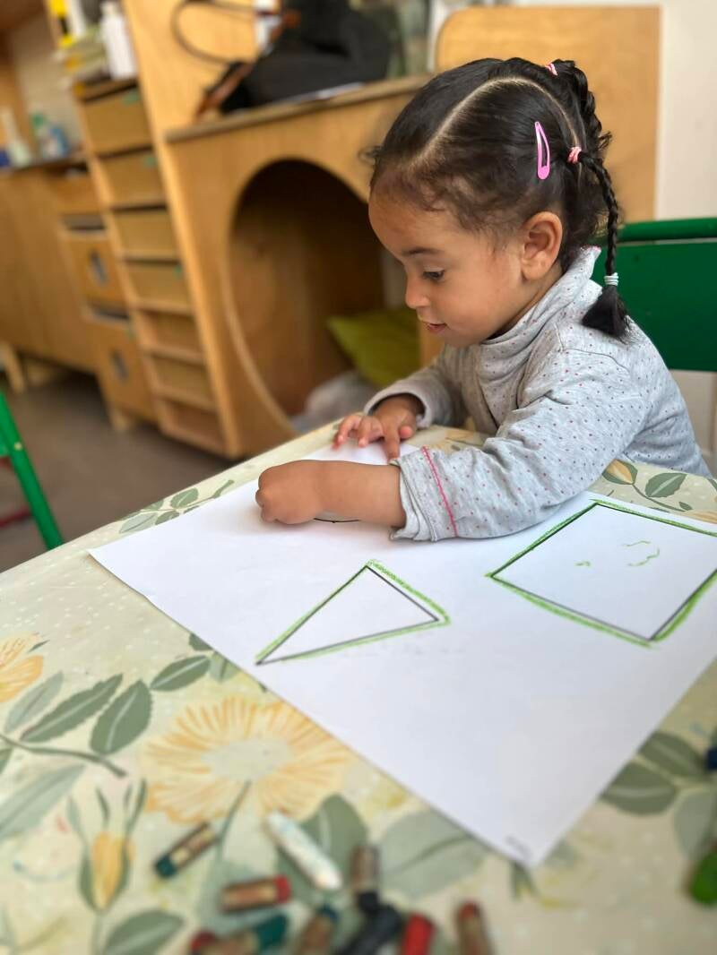 Deze twee weken hebben we hard gewerkt rond vormen, namelijk de cirkel, driehoek en het vierkant. De kinderen hebben deze vormen leren herkennen, benoemen en terugvinden in verschillende activiteiten en in hun omgeving. Zo konden ze de vormen ontdekken op een speelse manier en er actief mee aan de slag gaan.
