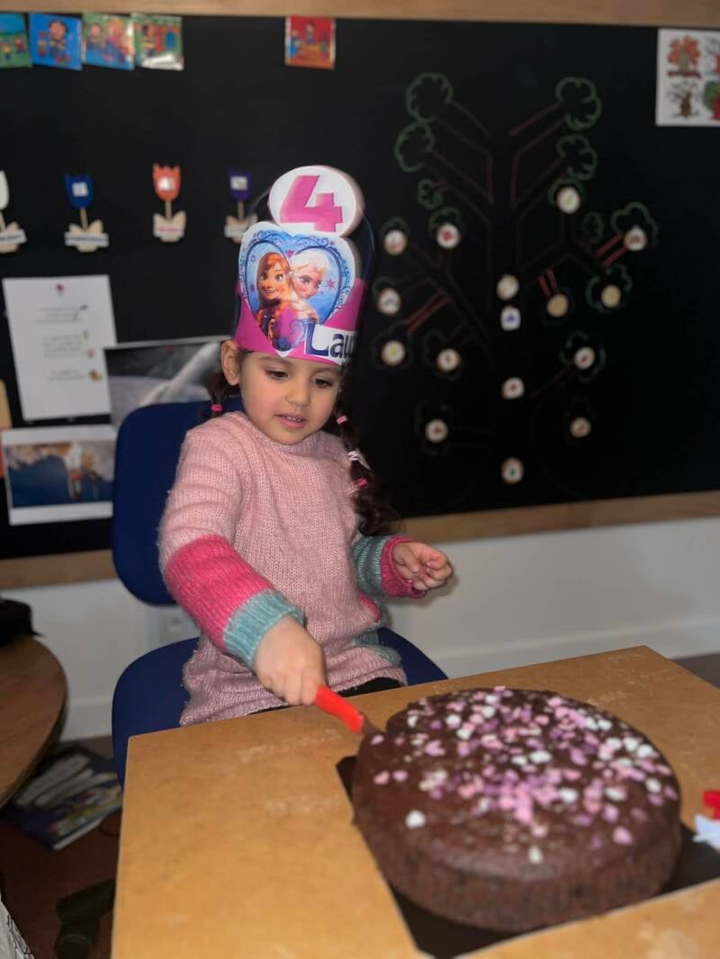 Layal is 4 jaar geworden en dat hebben we samen gevierd in de klas! We hebben er een heel fijn moment van gemaakt. De cake was super lekker en iedereen heeft ervan genoten.